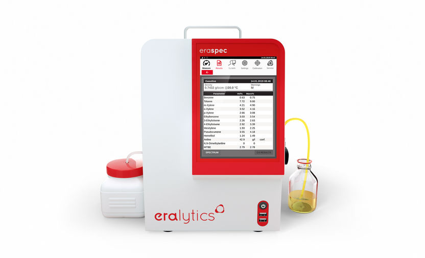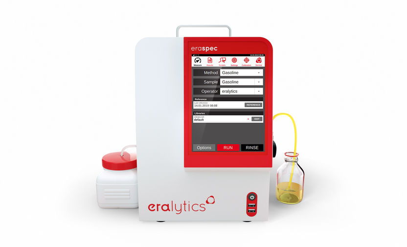 The fully automated FTIR spectrometer ERASPEC easily performs spectral fuel and oil analysis. Only at the push of a button ERASPEC delivers over 40 fuel parameters such as oxygenate concentrations or even complex properties like RON and MON within a few seconds from the measured IR spectrum. The measurement procedure itself is easily done, each step is visualized on the display. In not more than 60 seconds the measurement is completed, results can be printed, stored or added to a library.